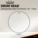 Remo Ambassador Clear bass drumheads prove that not all single-ply heads are created equal. Made from a single layer of 10-mil Mylar, Ambassador Clears have the freedom and flexibility to fully respond to every stroke. This gives your kick drum a fast attack and full-bodied sustain without the heaviness of modern batter heads. Ambassador Clears are, by far, one of Remo's brightest bass heads. Their direct, open sound suits a wide range of playing styles and musical genres. Order yours from Music Bliss today, and discover why many pro drummers choose Remo Ambassador Clear drumheads.