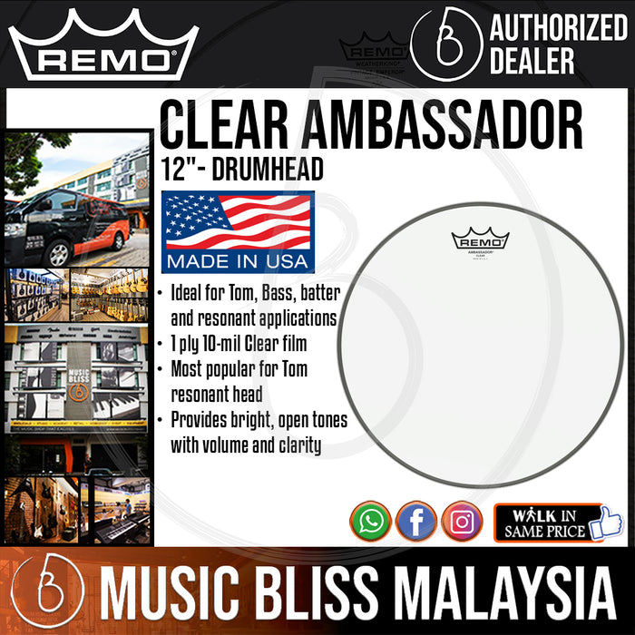 Remo's Clear Ambassador batter drumheads prove that all single-ply heads are not created equal. Made from a single layer of 10-mil Mylar, Clear Ambassador heads have the freedom and flexibility they need to fully respond to every stroke, giving them the sharp attack and full-bodied sustain you need. Clear Ambassadors are, by far, one of Remo's brightest batter heads. Their clear, open sound fits perfectly with a wide range of playing styles and musical genres. Order yours from Music Bliss today, and discover why many pro drummers choose Remo Clear Ambassador drumheads.