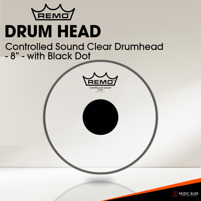 Providing you with medium and heavy-duty characteristics, the Remo 8" Controlled Sound Clear/Black Dot drumhead delivers midrange tone, sensitivity, and sustain that will give your drums serious punch. On top of that, this drumhead's black laminated center offers impressive durability and phenomenal tonal focus. Pro drummers like Jason Bonham, Mike Portnoy, and Steve Smith swear by Remo Controlled Sound drumheads. Grab a Remo 8" Controlled Sound Clear/Black Dot drumhead for yourself and see why!