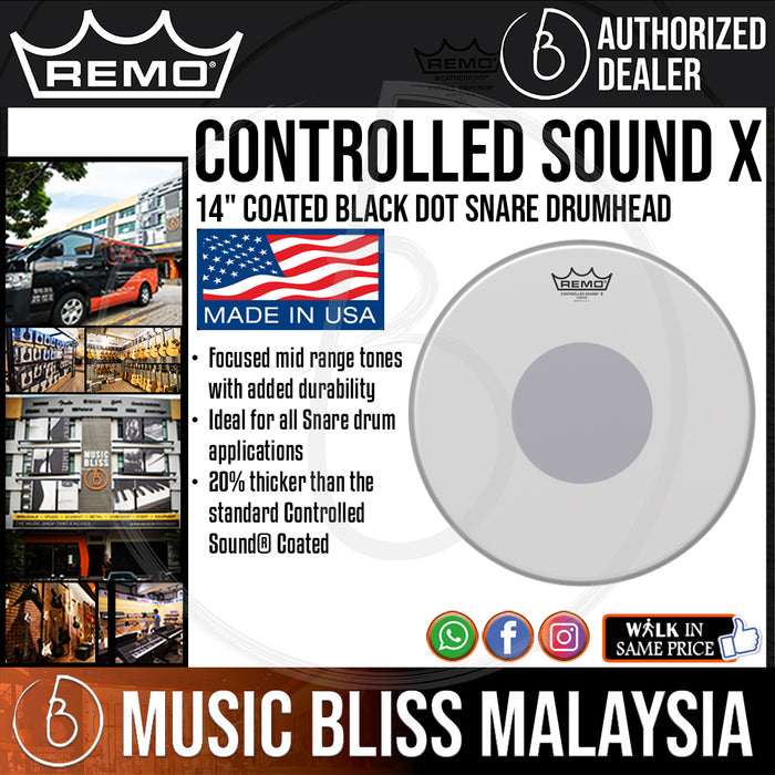 The Controlled Sound® X Coated Bottom Black Dot™ features focused midrange tones with added durability. Constructed with 1-ply of 12-mil Coated film and a 5-mil Bottom Black Dot™, Controlled Sound® X Coated Bottom Black Dot™ drumheads provide heavy-duty drumhead characteristics. The drumhead's outer area offers enhanced tone and sensitivity while the center dot adds durability and overtone control.
