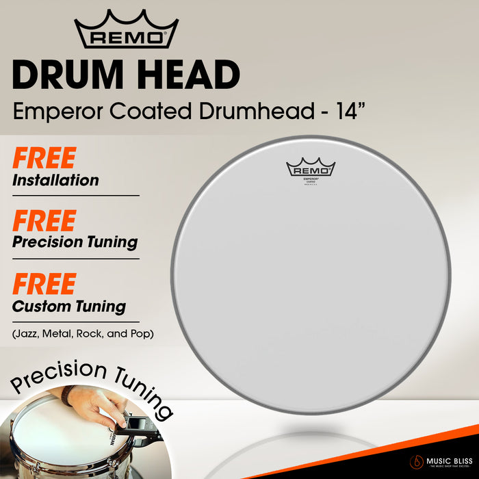 Get the snap and response you need with Remo's Coated Emperor drumheads. For over 50 years, Remo has been one of the world's top makers of quality drumheads. Coated Emperor drumheads have been among the most popular choices for decades. These heads are made with two free-floating plies of 7-mil Mylar, giving them bright attack, solidbody, and epic durability. If you want heads that can take a pounding and still sound great, long after typical heads wear out, then Remo Coated Emperors are the batter heads you want.