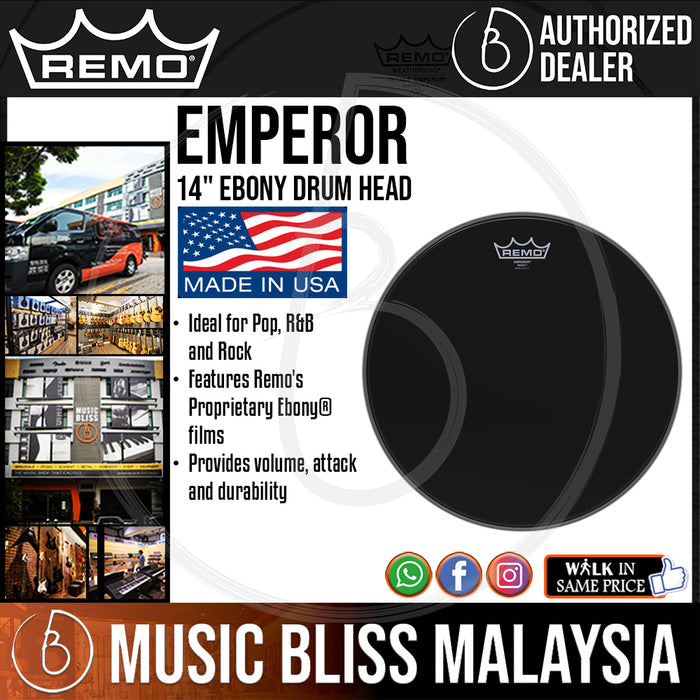 The Emperor® Ebony® features warmth and clarity with focused midrange tones and increased attack. Constructed with 2-plies of 7.5-mil Ebony® and 7-mil Clear films, Emperor® Ebony® drumheads provide maximum volume for Rock, Pop and R&B applications.