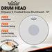 Remo's Emperor X coated snare drumhead, also known as the world's most durable Mylar drumhead, packs an amazing sonic punch. Drummers at Music Bliss appreciate the Emperor X for its consistent, focused warm tone. Plenty of pro drummers have already caught on to the aggressive powerful tone of the Emperor X, like Mike Fasano (Warrant), John Tempesta (Rob Zombie), Tre Cool (Green Day) and Travis Barker (The Transplants). When you want to enhance the big, bold sound of your snare drum, set it up with a Remo Emperor X coated drumhead!