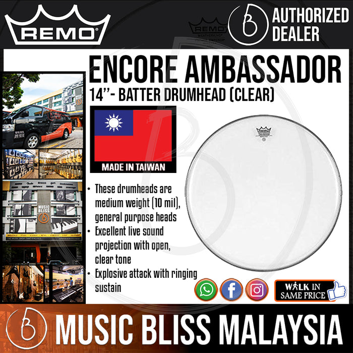 The Clear Ambassador® heads are medium-weight heads made with a single ply 10-mil Mylar® film to produce an open, bright, and resonant sound with plenty of attack.