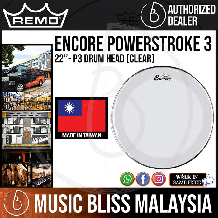 Remo Powerstroke P3 Clear Bass Heads are constructed from a ply of 10-mil Mylar film and a 10-mil underlay at the outer edge that dampens high-pitched, annoying overtones. This helps to create a great balance between response and clear tone.