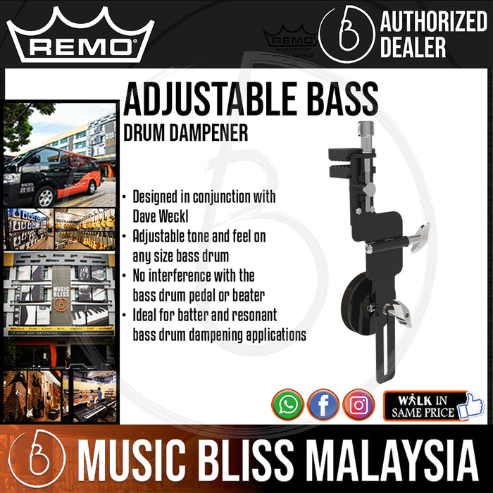 The Dave Weckl-designed Remo Adjustable Bass Drum Dampener (HK-6500-00) is a refreshingly holistic approach to bass drum muffling. Clamp this finish-safe damper mechanism anywhere on your batter- or reso-side bass drum hoop, apply the soft felt pad to your head, and within seconds, you’re well on your way to achieving the kick drum tone and energy your particular session demands. The HK-6500-00’s damper pad slides in and out relative to the edge of the shell to permit greater or subtler degrees of muffling. And thanks to its locking pivot, this system is lightning-fast to apply and remove between songs. If you’re looking for muffling alternative to felt strips and pillows, be sure to check out the Remo Adjustable Bass Drum Dampener through Music Bliss.