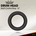 The Muff’l Control Ring features foam rings mounted in drums with specially designed trays that hold them in place to provide partial dampening for Tom, Snare, and Bass drums. Control Rings are easily mounted under the head on top of the bearing edge. A triple-notched system secures pads without adhesives, even on bass drums with low tension.