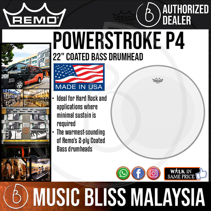 The Powerstroke® P4 Coated drumheads feature controlled sustain and focused low-end tones with increased durability. Snare and Tom drumheads are constructed with 2-plies of 7-mil Coated film with a 3-mil inlay ring, and Bass drumheads are constructed with a 7.5-mil inlay ring. Powerstroke® P4 Coated drumheads provide focused midrange tones making them the warmest-sounding of Remo's 2-ply drumheads with controlled sustain and attack.