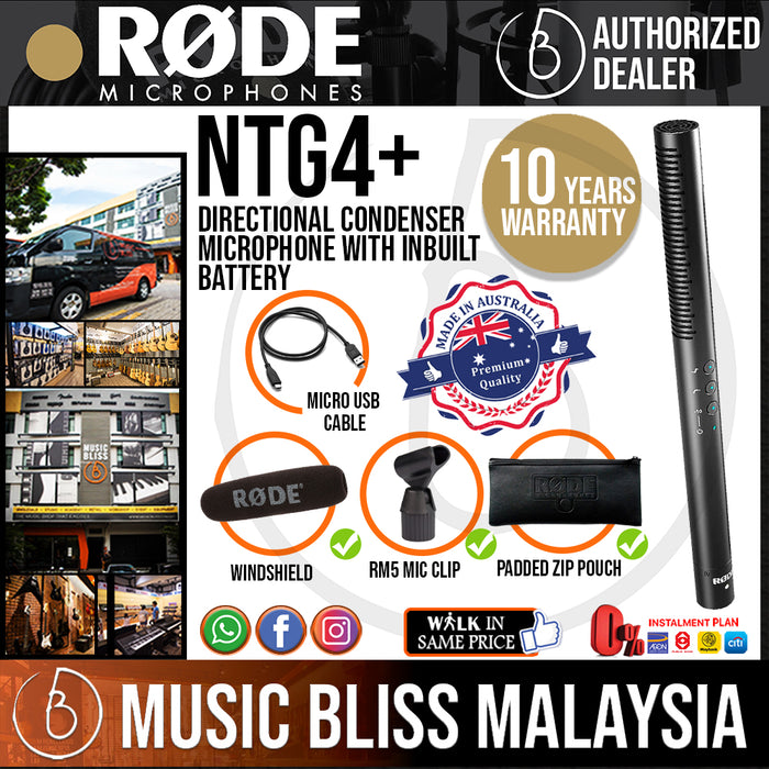 A revised take on a time-tested shotgun mic from Rode the NTG4+ offers you premium broadcast-ready sound and the versatility you need to use it on and off camera. One of the things about this highly directional condenser microphone that really stood out to the engineers here at Music Bliss is how quiet it is. Part of that has to do with the persistent-state digital switching used to toggle the NTG4+ onboard highpass filter-10dB padand high-frequency boost.