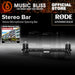 The RØDE Stereo Bar is a robust solution for mounting two microphones in a stereo array. With clearly marked spacing of up to 20cm, as well as angle and measurement indicators for ORTF and XY positioning, the RØDE Stereo Bar makes it quick and easy to achieve complex recording arrays. The 5/8” mounting threads are supplied with accompanying spacing clips to allow for easy positioning for stacked arrays, and the robust ABS construction makes the Stereo Bar stable and durable, allowing it to easily support the weight of two large diaphragm microphones such as the RØDE K2.