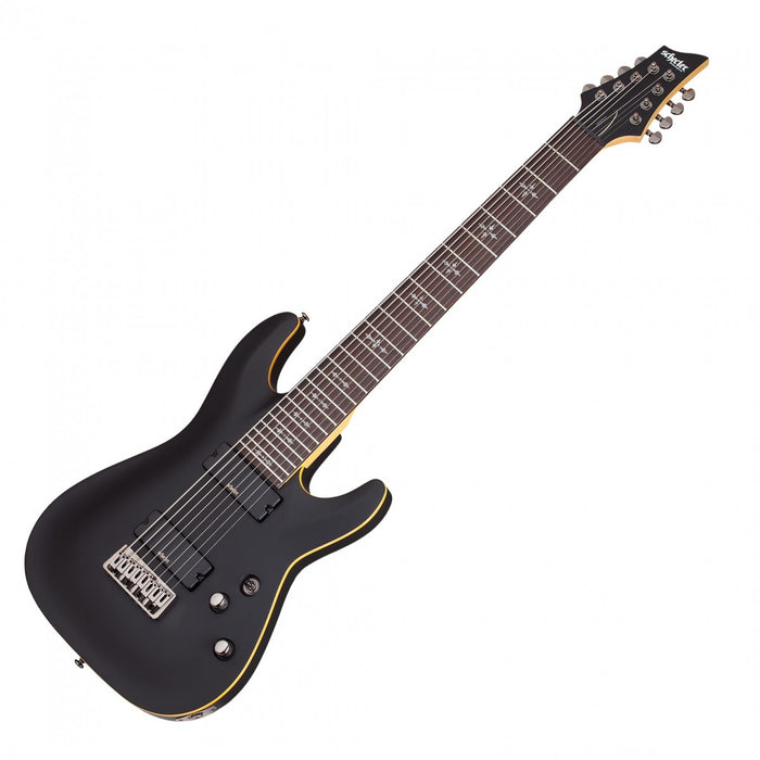 The Schecter Demon-8 is a rock and metal machine. Arm yourself with an axe of wondrous potential. Crafted from basswood and embellished with yellow binding, a Black Satin finish, and gothic cross fretboard inlays, it lends itself to visionary performances that are memorable in every way, delivering both excellent tone and superior looks. Take control of your sound, relish the thrill of eight strings, and feel the full wrath that this demon has to offer. Two Schecter Diamond Active HB-105S pickups have been loaded for truly intoxicating tones. You'll have searing, crystal-clear trebles and an articulate powerful low range, so you can be sure that all your riffs and solos will blaze through the mix. And if you're going to sound incredible, then you'll need flawless playability to ensure every note sings. Luckily, the flat, 14" radius and thin 'C' profile neck has got you covered, providing a fast, sleek feel that is then enhanced by the luscious rosewood fretboard layered on top.