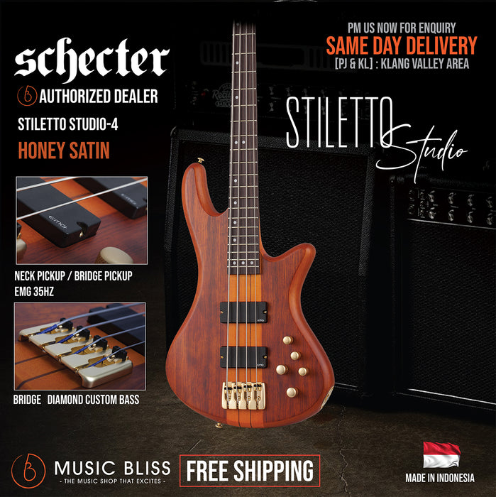 Schecter's ultra-playable Stiletto Studio 4 bass is also an incredible bargain. Its neck-through design injects both warmth and snap into your tones. From its beautiful bubinga top and mahogany body wings to its super-fast maple/walnut neck, the Stiletto Studio 4 oozes great tone and quality construction. You'll love the pair of EMG pickups and the active 3-band EQ; this setup lets you conjure practically any kind of bass tone you want - and plenty of it. Top-grade components keep this bass in stable tune. If you're looking for a bass that's perfect for practically any player, then you need this incredible Stiletto Studio 4.