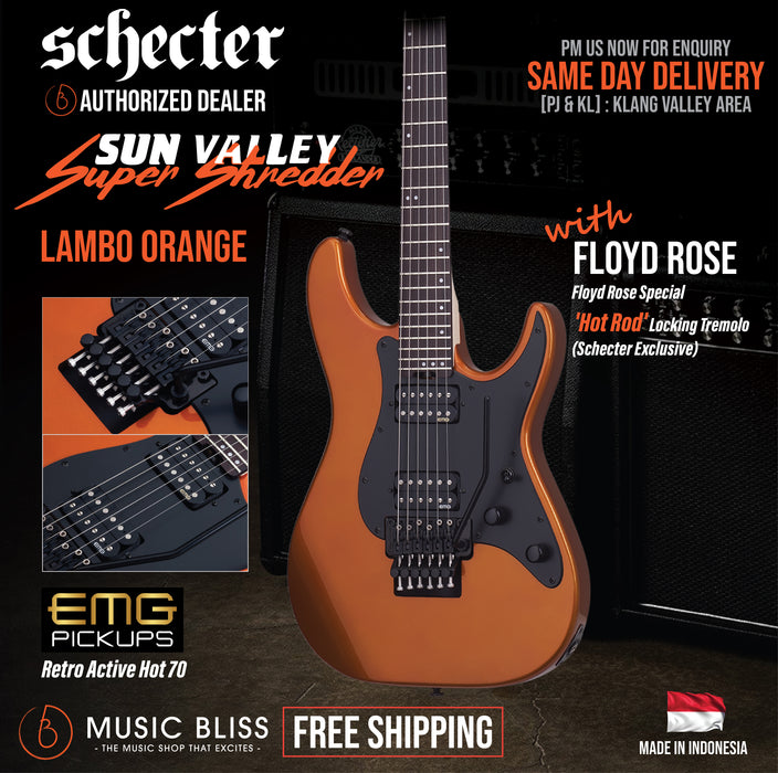 The Schecter Sun Valley SS FR solidbody electric guitar is a great choice for players looking for a guitar that pushes their technical limits, while boasting the features and design to keep up with their every note. The guitar's classic styling recalls some of the best super-style instruments in history. A duet of EMG Retro Active humbucking pickups deliver active clarity and passive dynamics. And the Schecter Sun Valley SS FR solidbody electric guitar's exclusive Hot Rod Floyd Rose tremolo offers precise tuning and pitch control.