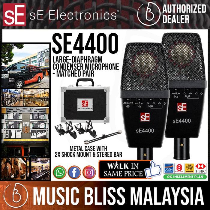 Looking to upgrade your mic locker with a rock-solid all-rounder? The sE Electronics sE4400 2nd Gen multi-pattern large diaphragm condenser mic is inspired by one of the most versatile European microphones in history, boasting a handcrafted, gold-sputtered dual-diaphragm true condenser capsule to capture every nuance of your source! Four polar patterns provide the sE4400 with an incredible level of range, making it an ideal choice for just about every source an audio engineer is likely to run into. Plus, a myriad of low-cut filter and attenuation pads enhance the sE4400’s flexibility even further, allowing you to tackle massive amplifiers and bass-heavy sources with ease. Lastly, sE Electronics include a highly stable shockmount custom made for the sE4400, cradling the mic and keeping your setup steady.
