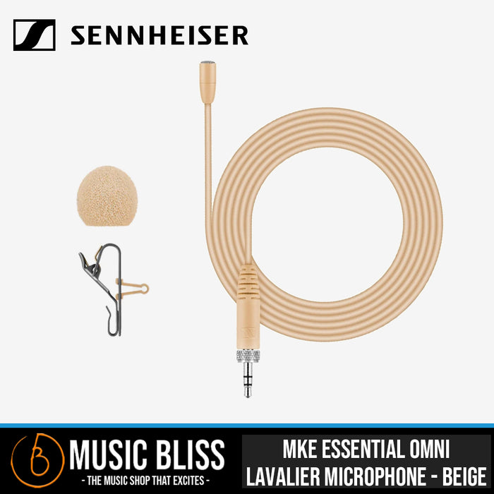 The Sennheiser MKE Essential delivers the core sonics of the MKE 2 lavalier mic a standard for musical theater — at an attractive price. This low-profile lav, worn near the performer's hairline or lapel (clip included), is optimized for speech reproduction in a performance or broadcast setting. It's powered by Sennheisers 20Hz–20kHz omnidirectional KE 4 microphone capsule, which picks up speakers, presenters, and performers naturally, without hotspots or excessive plosives while leaving the hands free for gestures and props. A foam windscreen, soft pouch, and access to our world-class Sales Engineers are included when you order your Sennheiser MKE Essential lavalier mic through Music Bliss