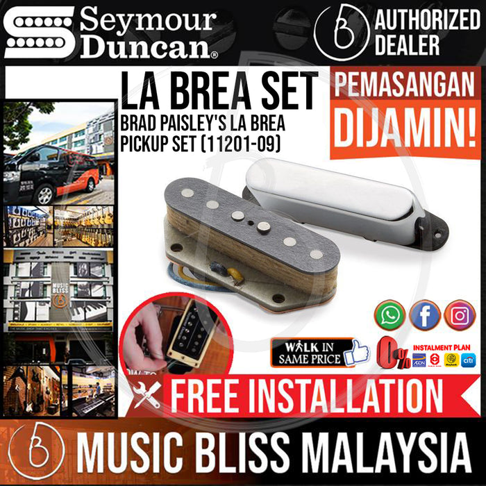 The Seymour Duncan La Brea pickup set replicates the unmistakable sound of Brad Paisley’s prized number one electric guitar. The bridge pickup includes Alnico IV rod magnets, vintage-correct cloth push-back wire, and classic gray forbon flatwork for an open, mid-focused sound. The neck pickup boasts Alnico II rod magnets and period-correct wire and flatwork for a thick, velvety sound. What’s more, these pickups’ lower output delivers a silky, vintage-like response when you plug into your favorite amp. If you find your tone lacking, this Brad Paisley Signature La Brea pickup set is guaranteed to inject life into a lifeless T-style electric guitar. Drop these into your axe, and see for yourself. But, you’d better rope off some time — you’re not going to want to put your guitar down!