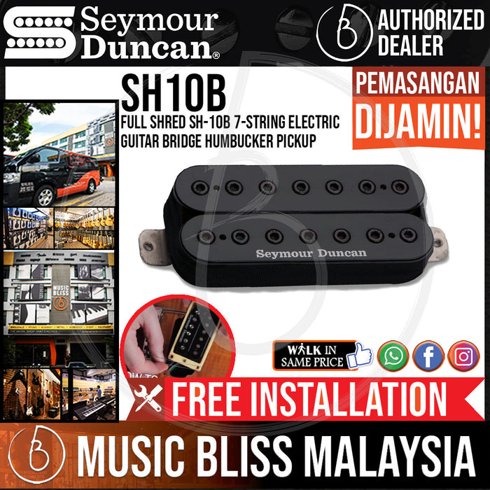 This is the 7-string version of our Full Shred bridge position humbucker. It delivers a clear, focused humbucker tone with a nicely balanced treble & bass response, and a backed off mid range. The shorter Allen head poles and alnico 5 bar magnet bring a nice crisp clarity to the high end, while keeping the low end tight and articulate. Great for all types of rock, blues, and metal, and works well in any humbucker equipped guitar with medium to warm tone.Pair with the Full Shred neck model for a well matched rockin setup.Hand built in our Santa Barbara, CA, factory, the 7-string Full Shred humbucker uses an alnico 5 bar magnet, nickel silver bottom plate, 4-conductor lead wire for multiple wiring options, and is vacuum wax potted for squeal-free performance. Comes with a 7-string mounting ring.