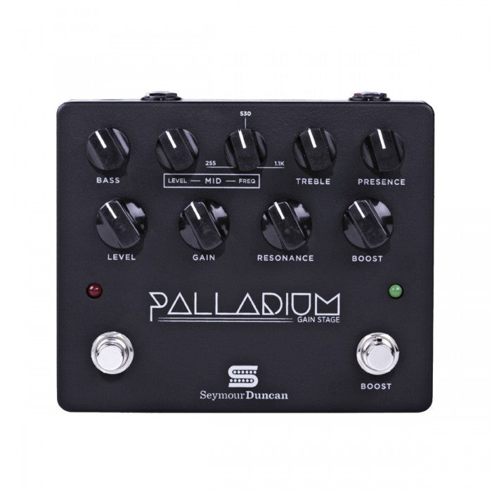 Seymour Duncan's Palladium Gain Stage overdrive/preamp effects pedal easily transforms your clean guitar tone into that of a high-gain tube amplifier. Every component is carefully chosen to offer you the same exact playing feel and experience as plugging into your favorite high-gain amp head. The Palladium also excels at adding hair to your already-dirty sound. And you'll love how tight the bottom end gets via the independently selectable boost function. The Palladium is one of the most powerful high-gain pedals offered at Music Bliss.