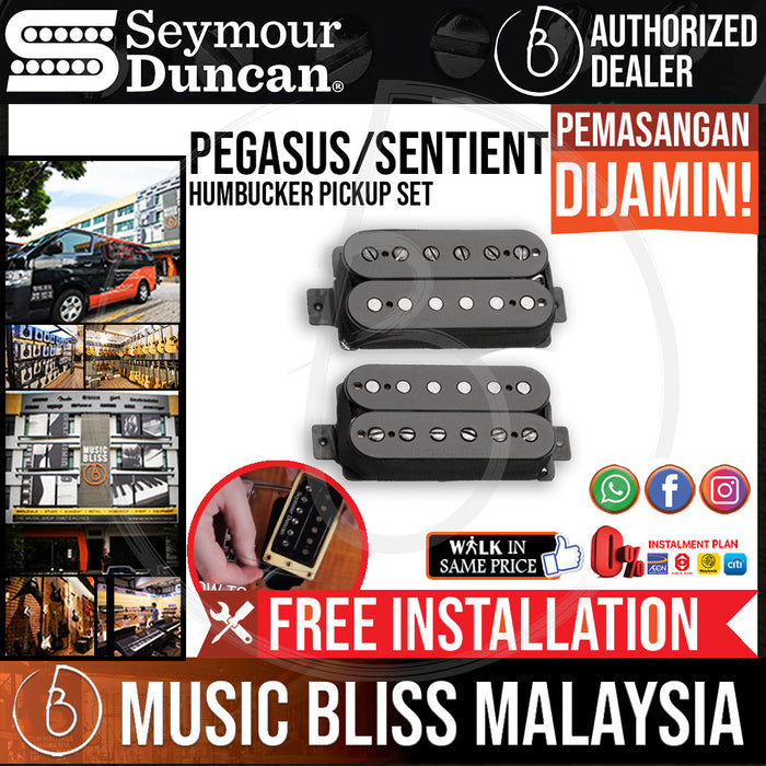 Heavy riffing and expressive solo articulation can be a tough balance to achieve in any guitar, but Seymour Duncan's Pegasus/Sentient 6-string Set makes it easy. Many of us here at Music Bliss have modified plenty of guitars, looking for that perfect balance of intense output and string-to-string isolation that lets you play huge chords and runs without becoming sonically tangled up. The Pegasus, with it's custom-wound coils and alnico 5 magnet, offers you that kind of string separation and satisfying tone to match. The Sentient neck pickup completes the picture, adding harmonic complexity on top of traditional PAF voicing, putting it somewhere between Duncan's '59 and Jazz model. Together, this Pegasus/Sentient set will let you get a whole new level of technical performance out of your favorite guitar.