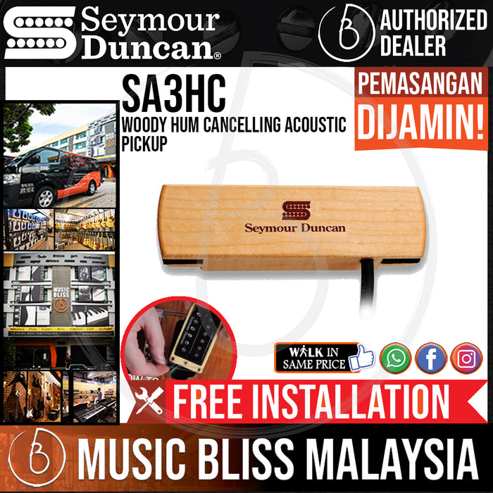 Seymour Duncan's Woody HC SA-3HC is the perfect no-fuss solution for instant on-stage amplification of an acoustic guitar. Just pop the SA-3HC into the soundhole and you've got a hum-canceling pickup with a beautiful maple cover. Plug into any acoustic guitar amp, PA, or mixer using the studio-quality 14' cable and start strumming. The Woody HC SA-3HC provides warm, rich tone that's perfect for chords or finger style playing. Get the most from your acoustic with Seymour Duncan's Woody HC SA-3HC!