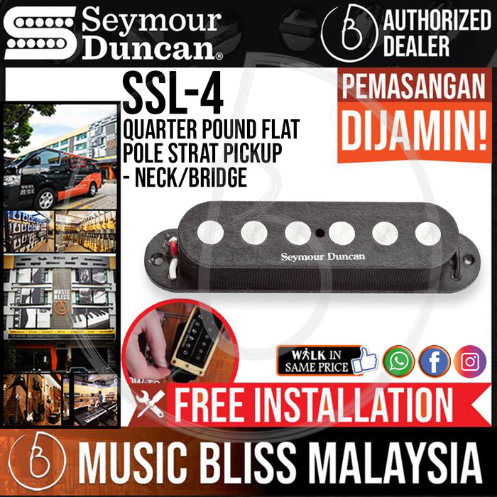 With more than twice the power of a traditional single-coil pickup, the Seymour Duncan SSL-4 Quarter Pound Flat provides you with a tremendously fat, punchy sound that's guaranteed to make everybody sit up and take notice. Oversized, quarter-inch diameter magnets and powerful windings give you an astonishing 13.3k of D.C. resistance, imbuing your Strat's tone with an impact and sustain that echo the classic character of hot P-90s. Incredibly versatile, the SSL-4 can go from squeaky clean to metallic scream without breaking a sweat, making it suitable for blues, classic rock, garage, heavy rock, and metal. We've loaded Seymour Duncan SSL-4 Quarter Pound Flat pickups into countless guitars in Music Bliss guitar shop, and customers always walk away happy. Check them out for yourself!