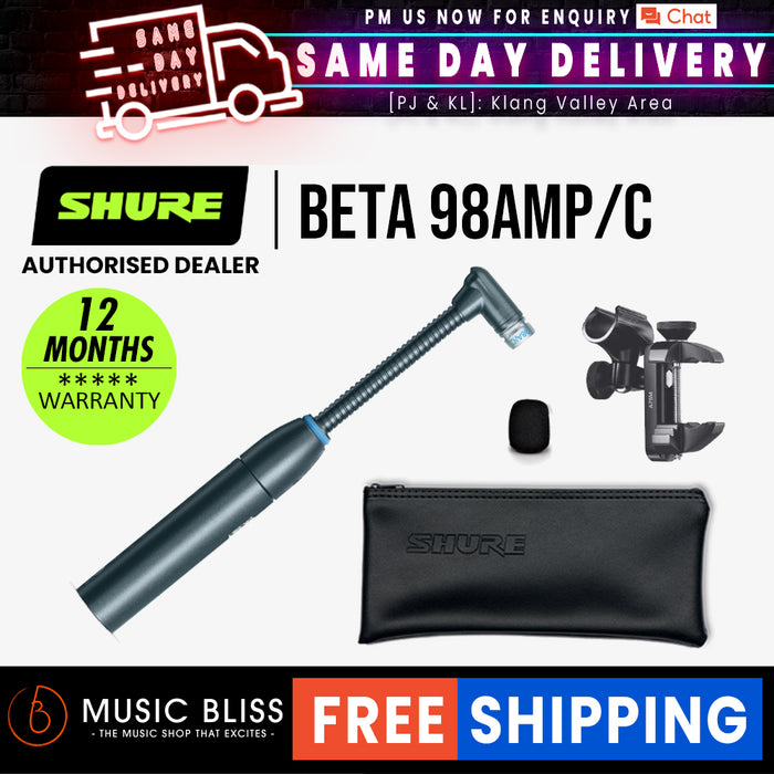 Need to maneuver your mic into a tight spot on the drums? Then you'll love Shure's Beta 98AMP/C mini condenser microphone/preamp. Its diminuitive size makes the Beta 98AMP/C perfect for situations in which a full-sized mic just won't fit - but, this mini mic doesn't compromise on impressive, accurate sound. Its cardioid pickup pattern helps keep unwanted outside sounds at bay. The Beta 98AMP/C comes complete with a compact preamp unit, gooseneck, and quick-release clip (perfect for stand or instrument mounting), so you get both perfect placement you need to make great sound happen.