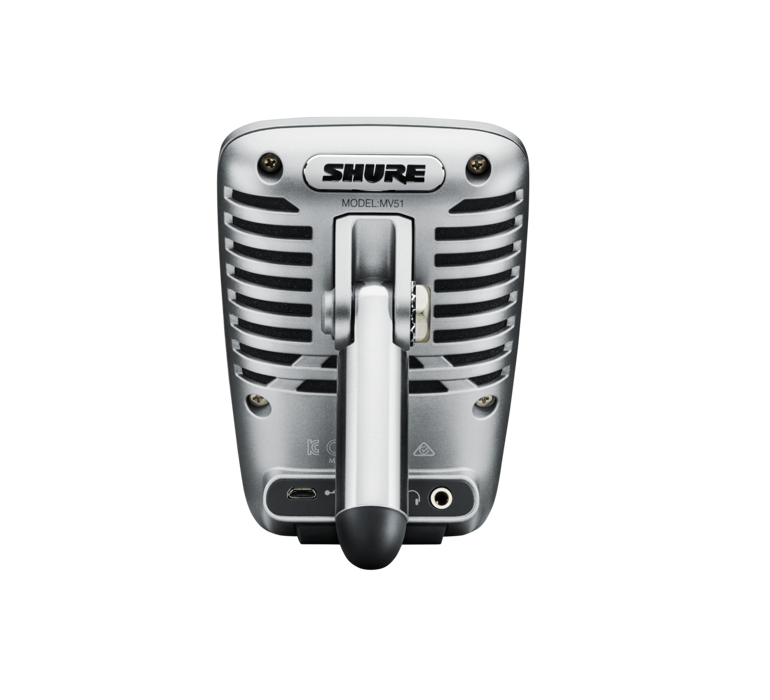 Despite its old-school vintage mic look, the Shure MV51 MOTIV series USB microphone offers you high-tech recording options you can use in your home studio and your mobile rig. A 1" condenser microphone element onboard the MV51 lets you capture delightfully clear sound, and Music Bliss recording experts really dig its five onboard DSP preset modes, which let you comfortably record vocals, voiceover material, instruments, and more, all with the same mic. A headphone output lets you monitor in real time, whether you're recording on your computer, iOS device, or Android mobile gadget. A handy touch panel lets you control all of the MV51's functions, and for added convenience, there's a kickstand built into the MV51, so you can set it down, hit record, and get to work.