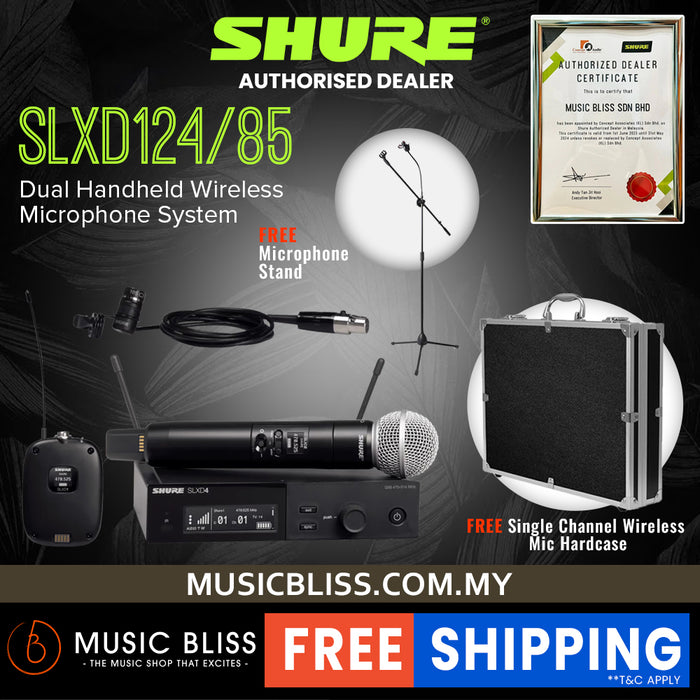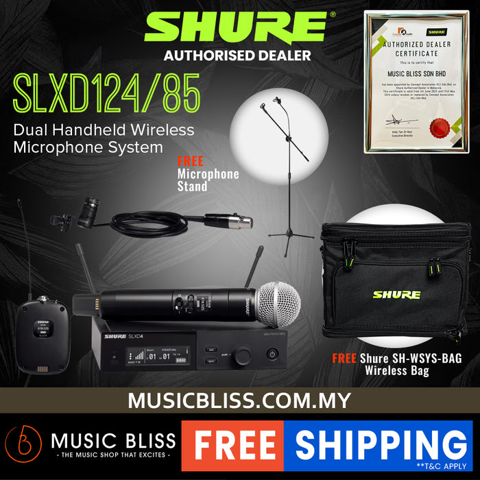 Featuring the legendary SM58® Cardioid Dynamic Microphone capsule on the SLXD2 handheld transmitter and the SLXD1 wireless bodypack transmitter with WL185, the SLXD124/85 provides transparent digital audio and rock-solid RF stability for lecture halls and live performances.
