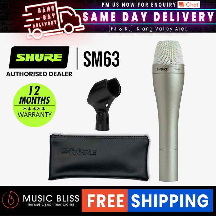 Elegant yet rugged, the high-output SM63 series of dynamic omnidirectional microphones are designed for professional applications where performance and appearance are critical. The three models differ only in length and color. The SM63 is designed for handheld use on stage and in broadcast, recording, and TV studios. The SM63L and SM63LB are ideal for remote interviews and other situations where longer microphones are desirable.