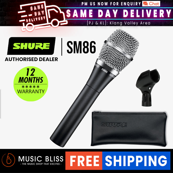 Following in the footsteps of the SM58 and SM57, the SM86 has everything the SM line of Shure microphones has stood for all these years - durability, quality performance, and reliability. The difference is that this new SM handheld microphone brings with it a remarkable sound quality that only a condenser mic can deliver!