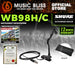 The Shure WB98H/C (the wireless version of the BETA®98H/C) is a premium cardioid condenser instrumental microphone that clamps onto the bell of wind instruments or onto the rim of percussion instruments. The integrated gooseneck and ratcheting swivel joint allows the microphone to be easily positioned and secured in place, and an isolation shock-mount reduces the transmission of instrument 'key noise' and other mechanical noise. A gooseneck angle brace is included to provide better retention of the microphone placement during more active performances.