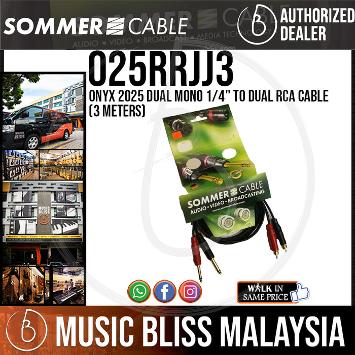 Sommer Onyx 2025 Dual Mono 1/4" to Dual RCA Cable -3 Meters (O25RRJJ3)