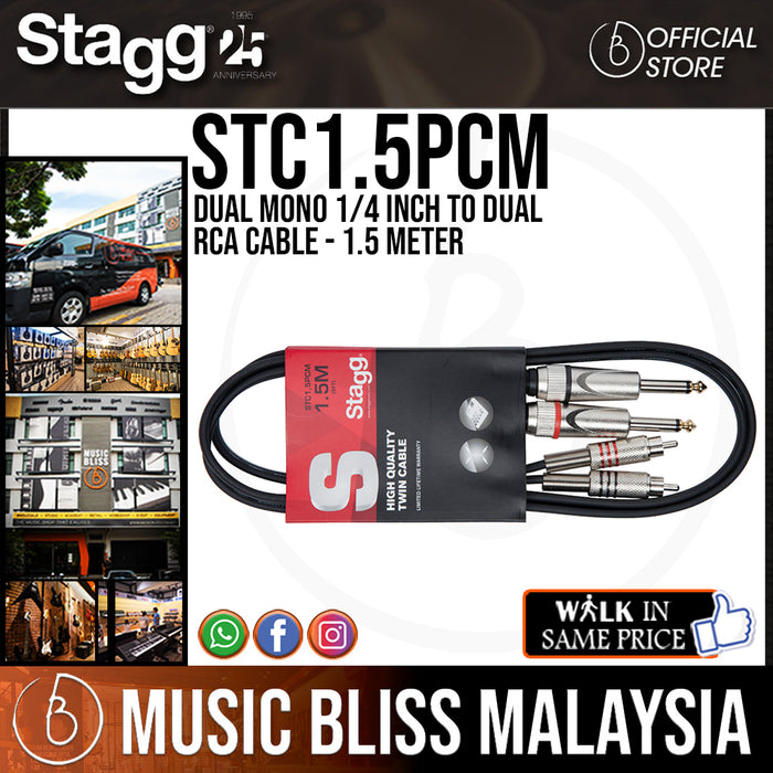 Stagg STC1,5PCM Dual Mono 1/4 Inch to Dual RCA Cable - 1.5 Meter (STC15PCM)