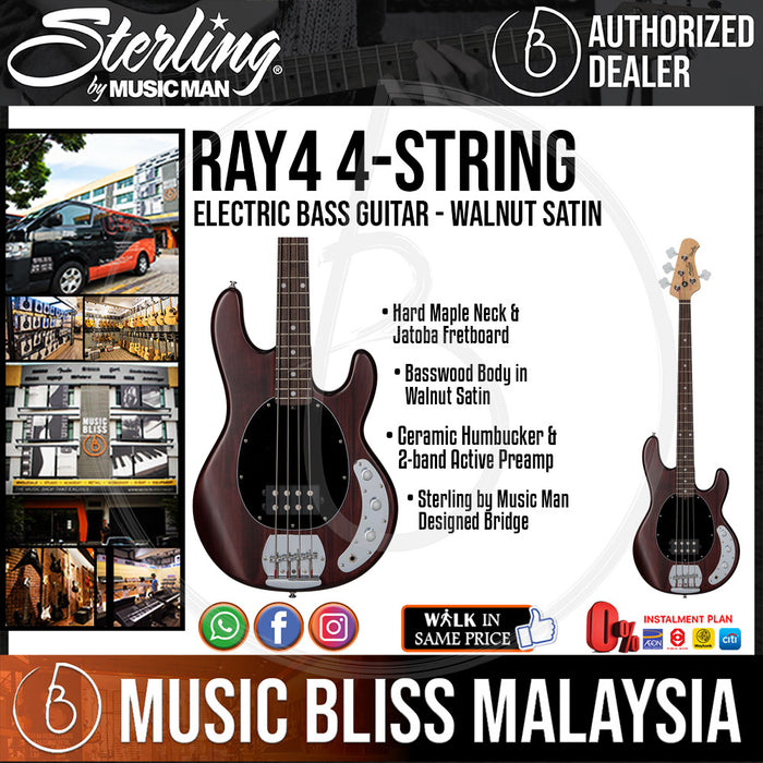 The Sterling by Music Man Ray4 electric bass brings you the look, sound, and playability of the original Music Man StingRay line. For starters, the Ray4 gives you the comfortable feel of a contoured hardwood body and a smooth maple neck, a tonewood combo that serves up a delightful range of complex harmonics. On top of that, you get a high-output humbucking pickup and 2-band active EQ - the same electronics that provide StingRay basses with such tonal versatility. In fact, the only shocking surprise about the Sterling Ray4 is how inexpensive it is.