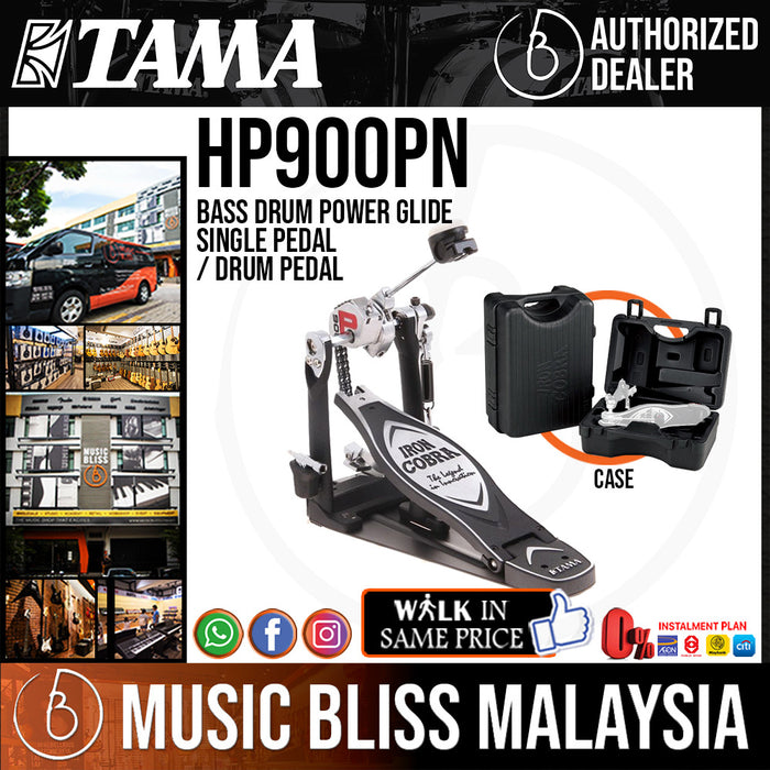 The revamped TAMA HP900PN Iron Cobra Power Glide kick drum pedal won't get in the way of your drumming, no matter how fast or expressively you play. Thanks to its innovative Cobra Coil pedal spring, the HP900PN gives you an incredibly smooth and fast response, as the Cobra Coil quickly returns the footboard to its original position after each kick. And TAMA has made the HP900PN the speediest, most responsive Iron Cobra yet by using the LiteSprocket design from the Speed Cobra series - it's 40% lighter than the previous Iron Cobra cam. It's amazingly stable thanks to a wider baseplate and frame, while the rugged 3-piece hinge construction promises long-term reliability. For a fast, responsive kick drum pedal that's built to last, the TAMA HP900PN Iron Cobra pedal is a proven winner.