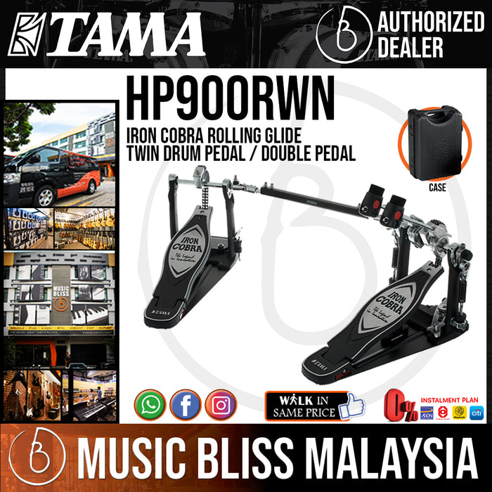 Smooth, stable, and highly adjustable, the TAMA HP900RWN Iron Cobra Rolling Glide double bass pedal is suitable for any drummer, any style. The Iron Cobra's design eliminates unwanted friction - you'll feel phenomenal smoothness and striking power every time you stomp on it, and you can easily adjust the feel according to your personal playing preferences. The drummers here at Music Bliss dig the LiteSprocket design (adopted from their iconic Speed Cobra series), which is 40% lighter than the previous Iron Cobra cam. The Power-Strike Cobra Beater delivers optimized beater action and an epic-sounding kick tone, while the Para Clamp II Pro keeps the HP900RWN Iron Cobra Rolling Glide pedal firmly connected to your drum.