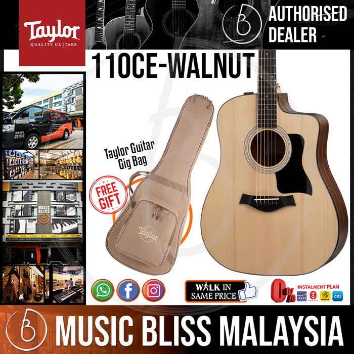 The Taylor 110ce acoustic-electric guitar is an excellent choice for a beginning guitarist or for a seasoned player's extra guitar. Get your hands on the 110ce, and you'll be blown away by its rich tone and outstanding projection right from the first strum. You'll find the 110ce's mahogany neck extremely comfortable and playable, while its Sitka spruce/walnut tonewood combination provides you with the perfect balance of warmth and sparkle. On top of that, the onboard ES2 electronics ensure that you'll sound your best — plugged or unplugged.