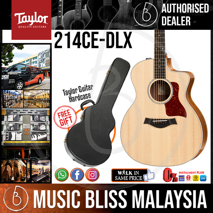 Combine time-tested acoustic design and a natural-sounding pickup system, and you've got the Taylor 214ce Deluxe. Its Grand Auditorium body has the width and depth of a Dreadnought, but its tapered waist and graceful contours make it look like a smaller instrument and impart balance and presence to the big sound, making it a favorite of recording engineers at Music Bliss. With its slender and fast neck, the 214ce Deluxe plays like a Taylor, which is to say, effortlessly. With the 214ce Deluxe, you'll feel well-equipped both on stage and in your studio.