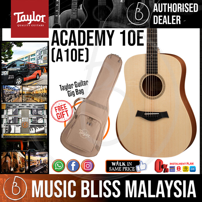 Music Bliss knows that a guitar with high action, poor intonation, and inferior tone will quickly take its toll and derail your learning experience. Taylor applied their decades of guitar-building expertise to designing the affordable Academy A10e that sidesteps these issues to deliver a guitar that plays comfortably and effortlessly, removing the barriers to your development as a player. And it does it at a price that will astound. And even seasoned players will love the high-quality tonewoods, the tone-enhancing varnish finish, and the unique armrest that reduces fatigue.
