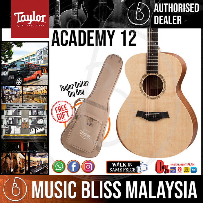 Just starting out on guitar? Taylor Academy Series acoustic guitars get you in on the ground floor with a genuine Taylor guitar at an accessible price. Music Bliss knows the lack of a quality instrument is one of the main reasons new guitarists give up. High action, poor intonation, and inferior tone will quickly take its toll and derail your learning experience. Taylor applied their decades of guitar-building expertise in designing an affordable line of instruments that sidesteps these issues to deliver a guitar that plays comfortably and effortlessly, removing the barriers to your development as a player. But these are guitars even seasoned players will love. We dig the high-quality tonewoods, the thin, tone-enhancing varnish finish, and the unique armrest that reduces fatigue during practice and performance. The Taylor Academy Series. Because everyone appreciates a quality guitar at a great price.