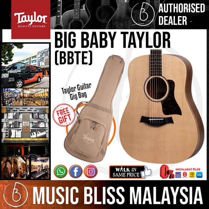 This version of our 15/16-scale Dreadnought features layered sapele back and sidesa solid Sitka spruce topand Taylors Expression System Baby (ES-B) pickupwhich incorporates piezo elements from our Expression System 2. The pickup is powered by an onboard preamp that boasts a handy built-in digital chromatic tuner. The preamp/tuner unit features an LED display for tuning and low battery indicationalong with Tone and Volume controls. The extra utility makes it easier than ever to sound your bestboth unplugged and amplified. The guitar comes with a gig bag for easy portability.