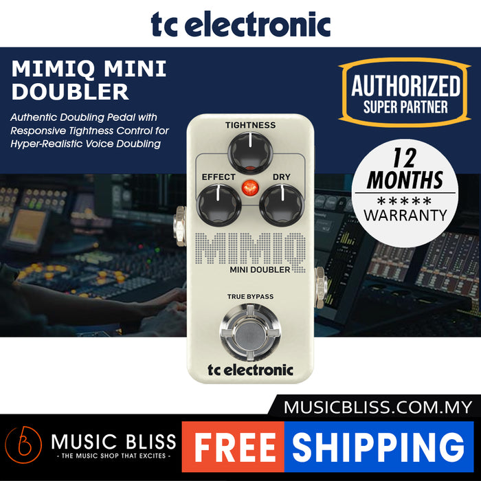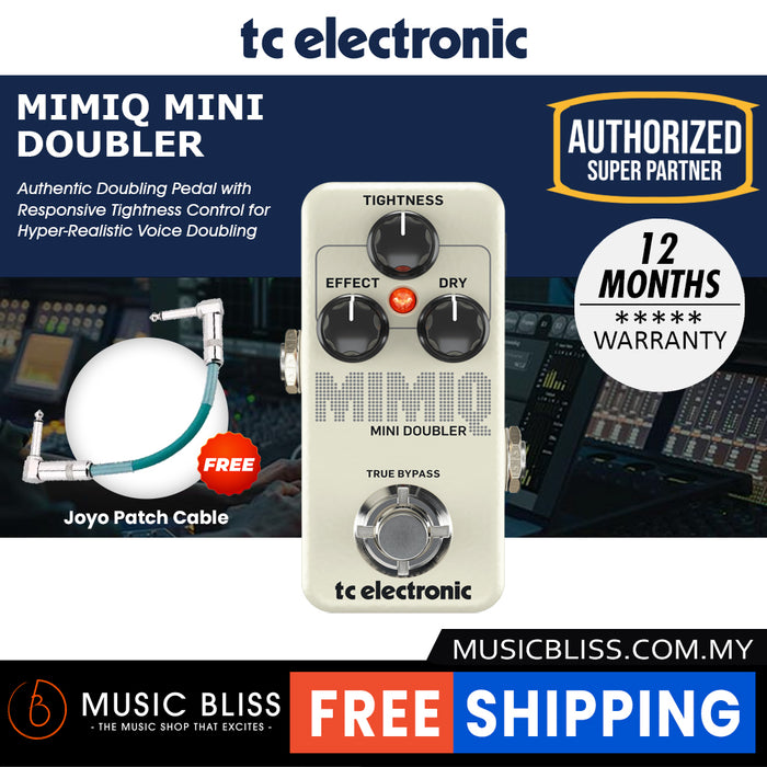 Like its full-sized predecessor, the TC Electronic Mimiq Mini Doubler effects pedal puts the stacked sound of your multi-tracked guitar lines onto your pedalboard. With a tap of your toe, the Mimiq Mini Doubler instantly simulates all the intricacies and imperfections that create the massive tones of double-tracked guitars. Controls for Tightness, Dry, and Effect dial the sound in for a tighter sound with more impact, or a bit looser for a more organic feel. Ask any guitarist at Music Bliss , the TC Electronic Mimiq Mini Doubler pedal is a great way to achieve a larger-than-life guitar sound.