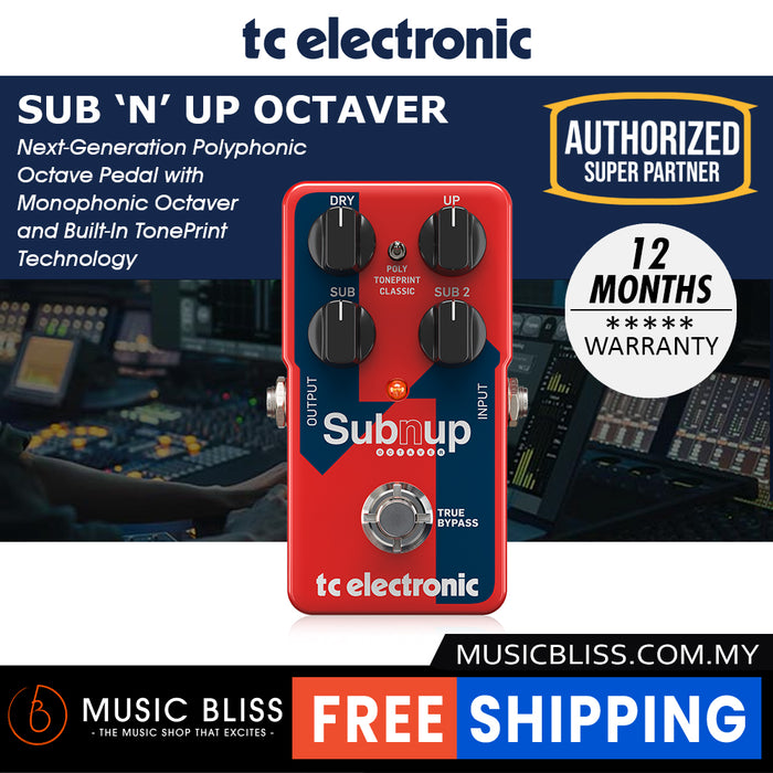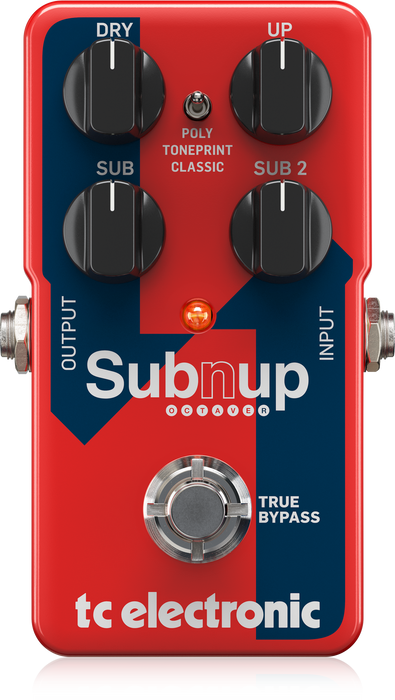 TC Electronic's Sub 'N' Up Octaver pedal has the power to turn your guitar tone into a ringing 12-string, a mammoth synth-style tone, and still offer plenty of control to create your very own soundscapes. Glistening upper octaves and earth-shaking lows are dialed in with the Up, Sub, and Sub 2 knobs. You can expand the tone with added effects, download artist Sub 'N' Up patches, and create your very own presets with TC's revolutionary TonePrint smartphone app and software. With all of this power under the hood, the Sub 'N' Up Octaver is a definite go-to at MusicBliss.