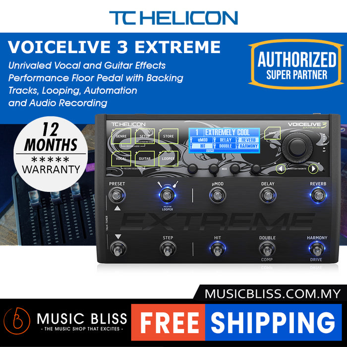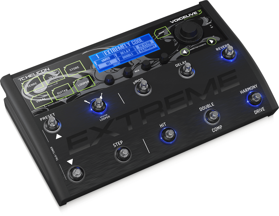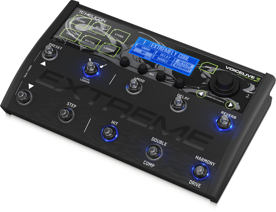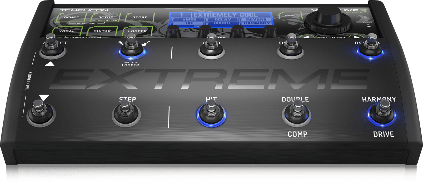 With four times the memory of its predecessor, the VoiceLive 3 Extreme takes TC-Helicon's versatile all-in-one performance tool to an entirely new level. When you want to shape and enhance your vocals with great-sounding onboard effects, create natural-sounding vocal harmonies, and process your guitar with effects and amp models based on TC Electronic's popular TonePrint family, this remarkable effects processor delivers. On top of that, the Extreme-ly feature-laden VL3X gives you backing track storage, groundbreaking effects automation features, and USB import and export of loops. At Music Bliss, we love the fact that you can access all of this remarkable processing power with a simple toe tap. Take it from Music Bliss: the TC-Helicon VoiceLive 3 Extreme is a powerful stage companion!