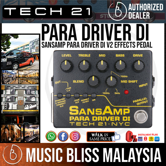 The Tech 21 SansAmp Para Driver V2 DI supercharges the performance of your acoustic, electric, or bass guitar by imbuing it with a natural tube-like warmth and presence. Whether you run straight into a mixing console or to an amplifier, the Para Driver's sweepable semi-parametric EQ gives you a plethora of tone-shaping possibilities. Also, onboard SansAmp circuitry eliminates the harsh harmonics of your piezo pickups, while the Drive control adds a tasteful edge to your tone. The Tech 21 SansAmp Para Driver V2 DI also gives you Rumble Filter and Air switches, which get rid of boominess and give you silky top-end sparkle. Music Bliss Sales Engineers receive ongoing training on nearly everything we sell, so give us a call. We're happy to help!