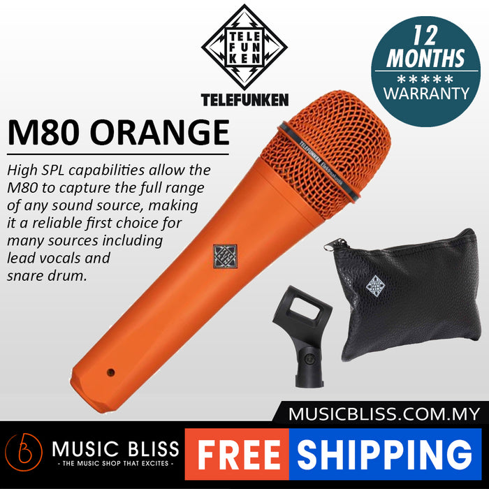 With its condenser-like sound, the Telefunken M80 dynamic microphone sets a new standard for high-quality live performance. Unlike the midrange-heavy tone of many popular handheld mics, the M80 employs a low-mass capsule and ultra-thin membrane to capture every nuance of your performance with amazing balance and detail. And you'll get great results anywhere you go thanks to the custom-wound impedance-matching transformer. You don't need an expensive condenser mic to get studio-quality sound on stage: you need the Telefunken M80. Now available in a rainbow of stage-ready colors!