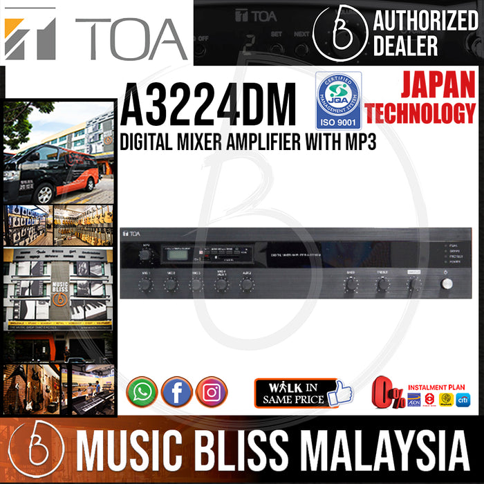 A-3224DM is a high performance yet cost-effective mixer power amplifier equipped with MP3 and Bluetooth function. Ideal for broadcasting, paging, or background music in schools, offices, shops, houses of worship and large ballrooms.