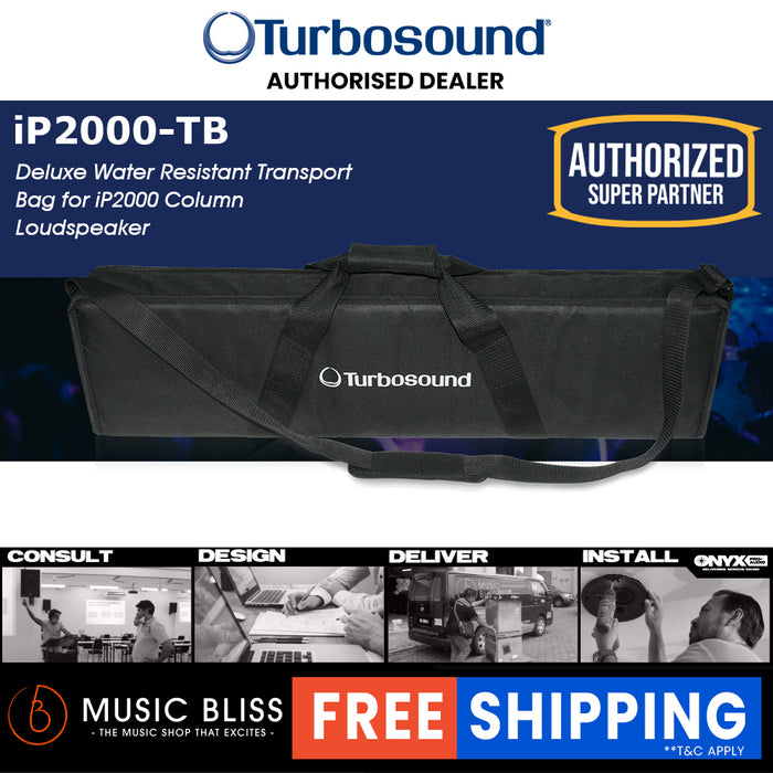 You rely on your Turbosound PA system to deliver killer sound gig after gig, so Music Bliss recommends protecting your investment. The Turbosound iP2000-TB is a custom-fitted deluxe water-resistant cover for the iP2000 column loudspeaker. Constructed of rugged, multilayer nylon, the iP2000-TB is an essential accessory for your iP2000 column loudspeakers.