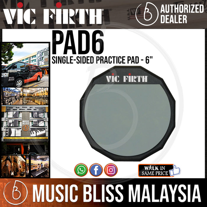 The Vic Firth 6" Single-Sided Practice Pad comes with soft rubber for quiet practice. Features a non-skid rubber base and an 8mm mounting thread for use on any standard cymbal stand.