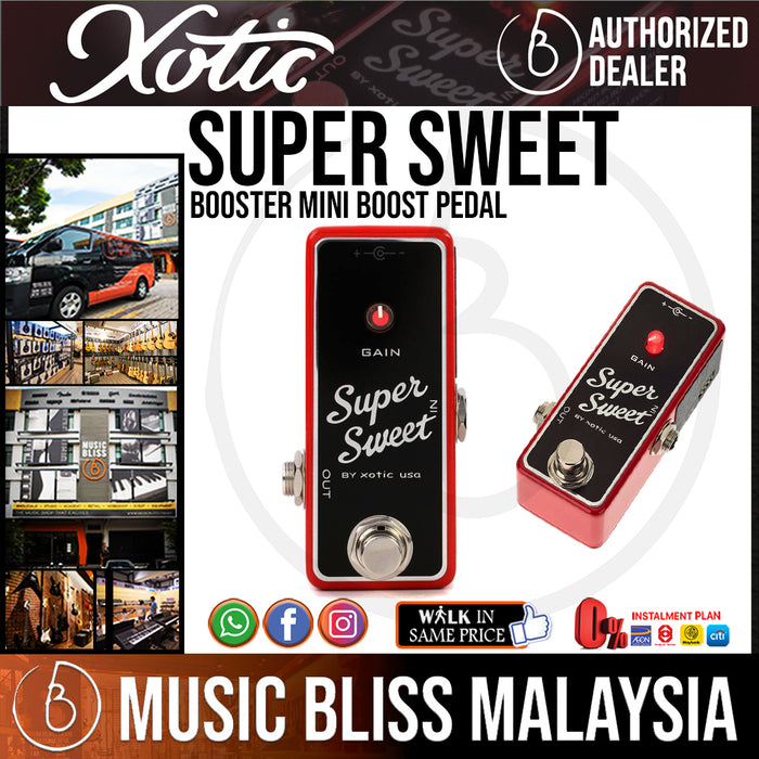 With premium components and up to 20dB of boost available, the Xotic Super Sweet Booster pedal is a great way to punch up your tone. The real magic lies in the Super Sweet Booster’s external DIP switch, which allows you to fine-tune which frequencies are emphasized with the boost. Whether you want a broad-range boost or want to focus your mids for more punch and impact, the Super Sweet Booster has you covered. Ask any guitarist at Music Bliss, the Xotic Super Sweet Booster pedal is a versatile tone-boosting tool in a compact format.